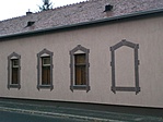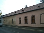 Nagy kiterjedésű sarokház, a Fő úthoz közelebb eső része van jó állapotban, a másik felének lehet más a tulajdonosa, vagy félbeszakadt a felújítás, mert a beljebb eső rész eléggé kopottas, szürke.