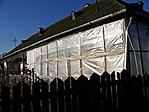 Télire sajnos befóliázzák a tornác nagy részét, mert a havat behordaná a szél a lakásba (a gát tetején áll az épület), így nem látszik mindegyik dísz, de így is nagyon szép. Melléképületként egy apró ablakú magtár-szerű épület is van, ez is eredeti, és ahogy a főépület, ez is alá van pincézve. Mivel mindkettőnek kő alapja van, így a vályogtéglából épült falakat a víz nem bántja. Korábban a telek hátsó részén hosszú istálló is volt, de ezt már igen régen elbontották, nincs meg. A tulajdonos elmondása szerint a melléképületet is ajánlották nekik, hogy bontsák el, a pincét pedig "sívóval" (sívó iszappal, töltés túloldalán levő Tisza-holtágból) töltsék fel, de szerencsére ebbe nem egyeztek bele: az épület jelenleg is áll, eredeti deszkázata még mindig nagyon szép állapotú, vaslemezből készült aprócsak ablakfedői ugyan rozsdásak már, de nagyon jól néznek ki.