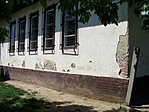 Néhány helyen vakolatleválások látszanak a falakon.
