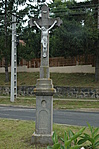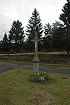 Egy útkereszteződésben áll. Az utat közbenfelújították. A kereszt állapota változatlan.