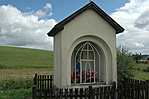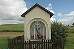 A kápolna és a kopjafa egymás mellett állnak. A kápolna állapota jó.
