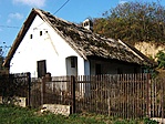 Házszámot nem láttam rajta, de nyilván ez a védett ebben az utcában. Állapota elég jó, de festése már néhol lekopott és a nádtető mohosodik.