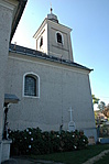 "A templom a XVIII. században épült. Magas dombon, a falu középső része fölött áll keletre tájolva. Eredetileg egyhajós, homlokzati tornyos barokk templom, amelyet később kereszthajószerűen oldalszárnyakkal kibővítettek, átépítettek. Kezdetben Szent Miklós volt a védőszentje, 1935-tõl a Magyarok Nagyasszonyának van ajánlva.