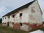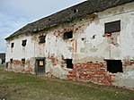 A magtár téglafala még viszonylag stabil, de az egész pusztuló képet mutat kívülről. Hiányoznak a nyílászárók, a tető kezd bomlani, a lábazatnál már a tégla is omlik.