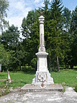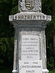 A hősi emlékmű az emlékparkban van. Múlt évben volt egy nagyon nagy vihar,ami ledöntötte a hősi emlékművet, és kidöntött sok szép nagy fát. Az emlékművet sok munkával összeragasztották, és most ismét a régi formájában áll, csak a ragasztások nyomai látszanak.