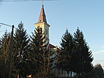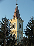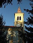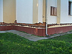 A templom oldalán a szigetelés elkészítésének nyomai láthatók