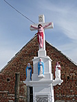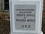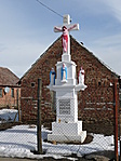 A kissé rikító szinekkel festett keresztet 1968-ban állíttatta Orsós János és Bogdán Mária, egy egyszerű lakóház elé.