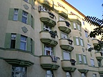 Igen kevésen múlik már, hogy az épület 3-ast kapjon..a lábazatnál vakolathibák és falfirkák tömkelege, a nyílászárók jelentős hányada rossz állapotú. Hogy 4-est kap, az annak köszönhető, hogy a felsőbb szinteken a díszítések még épek, és ott nem tapasztalható jelentősebb hiba.