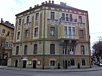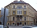 Szép állapotban van ez a palota, még a tűzfala is díszített. Csak a lábazat csúnya és a cégérek visszataszítóak.