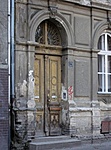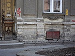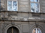 Sajnos elég rossz állapotban van a ház: alul a tégláig hiányzik a vakolat. Magasabban is hiányos a díszítés.