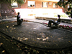 A szoborcsoport jó állapotban van, de nincs víz itt se.