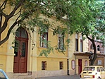 Nem tudtak túljárni az eszemen. Más már rég feladta volna, de én kitartó nyomozással rájöttem, hogy ez csak a Deák Ferenc utca lehet. Nem volt ugyan helyrajzi szám, de a házszámok elrendezése csak erre az utcára utalhat. Persze itt is megnehezítik az értelmezést azzal, hogy a 8-as szám külön említődik a páratlanok között, aztán van olyan is hogy 2-10, ami magában foglalja a 8-ast szerintem. De ezt is vegyük elírásnak, mint az utcanevet. A hatályos jegyzékben már nincs ez a hiba. Maga az utca szép hosszú belvárosi árnyas utca, ezért némely térfalat nehéz fényképezni. Sok ház egészen kiváló állapotban van, egyet most tataroznak, a vége, az Oroszlán utcai rész nagyon firkás.