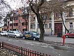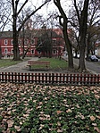 Szépen karbantartott parkos tér, védett fákkal, jó játszótérrel. Csak a házfalak piszkosak.