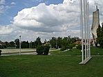 Az 1981-ben emelt emlékmű terjedelmes pihenőpark közepén áll, ma már felújításra szorul, a díszlépcső például több helyen törött, a Varga Imre stílusát idéző női szobor viszont ép.