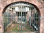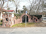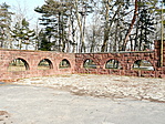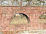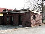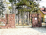 Vöröshomokkő kerítés kapu- és közműépítményekkel