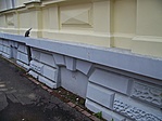 A nem túl régi felállványozáshoz logikusan kapcsolódó felújítás azonban nem egyértelműen látszik az épületen: a homlokzat festése apróbb foltokban málladozik, a lábazaton javítatlan repedés látszik stb.