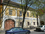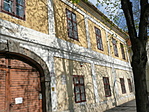 Udvari homlokzatán végigfutó öv- és főpárkány. A helyreállítás bemutatja az egykor mindkét szinten, s a hátsó, földszintes épületszárnyon is meglévő tornác elfalazott nyílásait, melyekből a legutolsó ma is látható.
