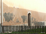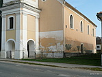 A lábazat kissé vizes, a festés néhol kopott, de jó állapotú a templom.
