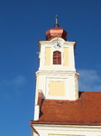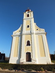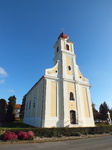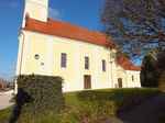 Szabadon álló, keletelt, egyhajós, poligonális szentélyzáródású, Ny-i homlokzati tornyos templom, a szentély felől kontyolt nyeregtetővel, a szentély D-i oldalához csatlakozó sekrestyével. A Ny-i homlokzaton nyíló kapu fölött évszám: 1786. Csehsüveg boltozatos hajó és szentély, a hajó bejárati oldalán köténydíszes mellvéddel díszített karzat. Falképek: 1797 után (ifj. Dorffmaister István). Berendezés: jellemzően 18. század vége - 20. század; főoltárkép, 1806 (ifj. Dorffmaister István); padok, szószék, 18. század vége, megújítva 1878-ban. Orgona: 1867 (Carl Hesse). A templom 1786-ban épült. A templomkertben: kőfeszület Szűz Mária, Szent János és Mária Magdolna alakjaival, 1909; első és második világháborús emlékmű, 1990.