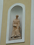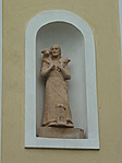 NY-i homlokzatot lizénák tagolják, ablaktalan. A csatlakozó sekrestyét félnyeregtető fedi.