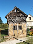 A település szélén, fésűs beépítésben álló, téglalap alaprajzú, kétszintes, favázas, deszkaoromzatos, nyeregtetős épület. Az alsó és a felső szint a favázak között deszkaborítású, az alsó szinten sártapasztással. Az alsó szint két, gerendás famennyezettel fedett helyiségből áll. Épült a 19. század második felében. Népi műemlék.