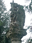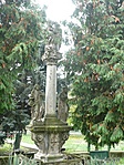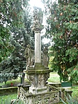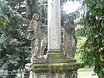 A település főútvonala mellett, négykaréjos, áttört motívummal díszített kőkerítéssel körbevett területen, kereszt alaprajzú talapzaton, kettős volutával alátámasztott posztamensen álló oszlop, tetején Szentháromság szoborcsoporttal. Az oszlop két oldalán két, attribútumok nélkül álló szent. Állíttatta zalabéri Horváth Nepomuki János 1790 körül, a kőkerítés később készült.