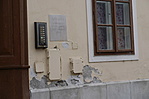 Lábazata fölött egyre jobban kezd kopni a vakolata.