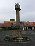 Az r. k. templomtól (trsz. 6537) DNy-ra, volutákkal díszített, ívháromszög alaprajzú posztamensen álló pillérre helyezett Szentháromság-szoborcsoport. A posztamens mindhárom oldalán és a pilléren kronosztikon, a posztamens párkányán három angyal térdel. 1767-ben állíttatta a Batthyány család. Az oszlop 1943-ban készült.