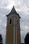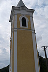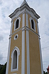Négyzet alaprajzú, két, téglából falazott, félköríves nyílással áttört, pillérre támaszkodó, nyeregtetővel fedett harangláb. A 18. századi harangtornyot a 19. század végén újjáépítették.