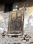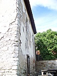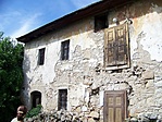 Az épület nyilvánvalóan lakatlan, bezárva áll, vakolata jóformán már egyáltalán nincs. Nagyon furcsa a semmibe nyíló emeleti ajtó.