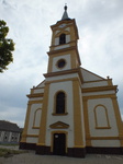Parkosított kiteresedésben szabadon álló, egyhajós, poligonális záródású templom, ÉNy-i homlokzata elé kilépő toronnyal, a toronyaljba vezető, kőkeretes, zárókődíszes kapuja felett timpanonnal. DNy-i homlokzatán aediculás oldalbejárat. A toronysisakon 1903-as évszám. A csehsüveg boltozatos toronyalj falán, kőtáblán magyar nyelvű építési felirat, 1781-es évszámmal. A hajóban stukkódíszes síkmennyezet, a hajó két végén vasoszlopokon nyugvó, famellvédes karzatok. Berendezés: jellemzően 18. század vége. Orgona: 1909 (Soukenik János). 1781-1783 között épült, tornya 1786-ban készült el, 1836-ban a tetőt, 1843-ban a torony tetejét javították, melybe 1847-1848-ban új órát szereltek. Jelenlegi formáját az 1885-1889 közötti átépítéskor nyerte. 2001-2002-ben felújítva.