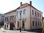 A Rákóczi utca 14. szám két épületegységből áll. A jobboldali részt és z egész ház földszintjét felújították pár éve, de a homlokzati falon a jelentkeznek már a falhibák. Az alacsonyabb rész földszintjén magáncégek, szolgáltatók dolgoznak, a a jobb oldali szárnyban szolgáltató cég működik. Ide csak hosszas utánajárást követően kaptam engedélyt felvételek készítésére, és kizárólag az értékes kőkeretes ajtó, ablakok, valamint a terem közepén álló széles térelválasztó fal kőberakásainak megjelenítésére.