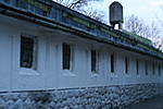 A hosszhomlokzatok egyenletes ablakrendje az egykori kabin-sor szélességéhez igazodott (52., 53. fotók). A kifelé lejtő ferde-könyöklőjű ablakok, ill. a nyílások közötti falszakaszokon a terméskő-lábazatba futó páros sáv-mélyítések a geometrikus díszítő-architektúra elemei.