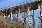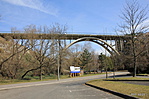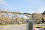 Dél felé az út 200 m hosszú sziklabevágásban halad tovább a város felé. A sziklahasadékot elhagyva a nagyív baloldalán, a kőkorlát oldalába kőtábla emlékezik meg a híd építéséről: "VÖLGYHÍD ÉPÜLT 1936-37 ÉVBEN".