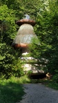 A forrásház függőleges tengelyére kör és tizenhat szögű helyiségek szerveződnek az alábbi sugarakkal: a lépcső 1 méter sugarú, az orsótér egy középre helyezett acélcső, 0,25 m vastag betonfallal. A földszint kb. 4 m magas vasbeton lemezkonzolos-konoid, kb. 6 m kiüléssel, felette-alatta nyitott terasz/tér található.