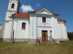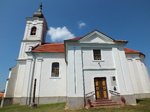 Észak-déli hossztengelyű, szabadonálló, műpalával fedett, nagyméretű templomépület. Egytornyos déli főhomlokzat, hajójának északi vége poligonális zárású. Hosszfalain ívesen záródó árkádok, bennük íves záródású ablakokkal. Főhomlokzatát a középtengelyben pilaszterpáron ülő hatalmas timpanon díszíti. A timpanon alatti falfelületen kőtokos, szemöldökös ajtó nyílik, zárkövében füzérdísszel. A timpanon felett magasodó tornyot ívesen lefutó féloromzatok fogják közre, szélükön 1-1 vázával. A toronytestet alul téglány alakú ablak, a harangszinten volutás, fűzéres fejezetű pilaszterek között íves ablak töri át, óraíves párkánya felett törtvonalú bádog gúlasisak.