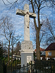 A templom (2186) főbejárata előtt álló kőkereszt. Készült 1807-ben.