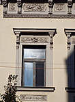 Zártsorú beépítésben álló, egyemeletes lakóépület földszintjén üzletekkel. Főhomlokzatának első emeletén négy tengelyben konzolos szemöldökű ablakok, jobb szélső ötödik tengelyben pilaszterkeretelésű ikernyílás, előttük öntöttvas korlátú erkéllyel. A homlokzatot többrészes konzolos párkány zárja. Az udvarra hevederes dongaboltozatú kapualj vezet. Az L alakban kiépített épület földszintes udvari szárnyában félköríves boltportálok.