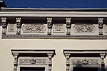 Zártsorban álló egyemeletes épület. Az épület földszintjén a jobb oldali tengelyben egyenes záradékú kapu nyílik. A kaputól balra eső földszinti szakaszon balkáni hangulatú boltportál látható, mely a homlokzat e részét teljesen eltakarja. A földszint és az első emelet között profilozott osztópárkány húzódik. A kapu fölötti két emeleti tengely szélességében négy öntöttvas konzolon öntöttvas korlátú erkély nyugszik, melynek középszakasza ívesen előrelép. Az emelet első-harmadik tengelyében profilozott könyöklőpárkányról induló konzolfejezetű pilasztereken golyvázódó, fogrovatsorral kísért szemöldökpárkánnyal koronázott stukkókeretek fogják körül az ablakokat. Az ablakkeretelések konzolai között és az ablakok könyöklőpárkányai alatt indadíszes stukkóbetétek láthatóak, melyek közepét gázkonvektorok szellőzőrácsai törik át. Az első emelet negyedik tengelyében lévő, kis mértékben előrelépő rizaliton ugyanilyen keretelésű ablak látható, ám ennek könyöklőpárkánya alatt baluszteres betétű faltükör látható, melynek közepét gázkonvektor szellőzőrácsa díszíti. Az első emelet jobb szélső két tengelyében erkélyajtó, illetve ablak található, melyek közös kereteléssel vannak körülfogva. A nyílások szárai mellett vájatolt törzsű, kompozit fejezetű pilaszterek futnak, melyeken közös szemöldökpárkány nyugszik. A szemöldökpárkány széles képszékből, és fogrovatsorral kísért profilozott záróelemből áll. A pilaszterek fejezetei között a többi ablak konzolai között lévővel megegyező stukkóbetét látható. A homlokzatot háromrészes párkányzat zárja, melynek alsó, keskeny, profilozott sávja fogrovatsorral van kísérve, képszékében konzolok közeiben ornamentális és alakos díszű stukkóbetétek láthatóak, záróeleme pedig profilozott kialakítású. Az épületet cserépborítású nyeregtető fedi.