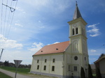 Település központjában szabadon álló, homlokzati tornyos, nyeregtetős, egyhajós, íves záródású hajóval álló épület. Gúlasisakos tornya, kívülről romantikusan átalakítva. A tremplom ablakai a hajón szegmentívesek, a tornyon félköríves ikerablakok (harangszint) illetve körablak (földszint) nyílik. A torony padlásszintje félköríves tükrében három-három, félkörív-záródású keskeny ablak látható. Az osztópárkány alatt ívsor fut körbe. A zárópárkány alatt toronyóra helye látható.