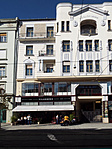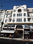 Zártsorban álló négyemeletes, szintenként változó tengelyszámú épület. Földszintjén a középtengelyben levő kapu két oldalán egy-egy egybefüggő üzletportál láthat, az első emeleten egybefüggő teljes üvegablaksor fut végig. A második emelettől a középső szakaszban rizalit lép előre, mely az épület párkánymagassága felett oromzatban végződik. A rizalit kép oldalán többféle elrendezésű erkélyek csatlakoznak. Az épületnek hosszan elnyúló, téglány alakú udvara van. Az udvari homlokzaton külső, kovácsoltvas korlátú folyosók futnak körbe, az udvar felénél keresztirányú függőhidakkal összekötve. Épült 1911-ben Hajós Alfréd és Villányi János tervei szerint.