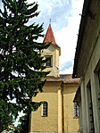 Jó állapot, a lábazat javítása folyamatban lévőnek látszik. A torony részen vakolat hiány.