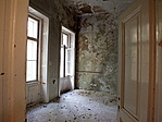 Nagyon meglepődtem. Két hete a nagy szél, az ellopott tetőcserepek és ereszcsatorna miatt, beomlott az épület egyik szárnya. A falakról leesett a vakolat, a nyílászárók hiányoznak, a szél ki-be jár az ablakokon, a tető hiánya miatt komoly leázások vannak, a parkettát ellopták. a fürdőszobákat leszerelték.