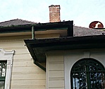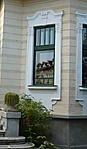 A sok zölddel takart épület állapota jónak látszik, az esőcsatorna rozsdás.
