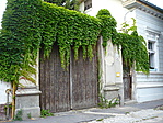 A ház állapota jó, de a kertkapu (az ajtó eredetileg szép lehetett!) és a vadszőlővel befuttatott kerítés kimaradt a felújításból.
