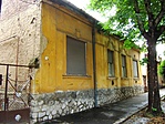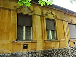 A sárga színű földszintes épület vakolata és festése már sokhelyütt hibás.