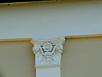 A homlokzatokon a népi motívumokat (napsugaras dísz, karika, szív) keverték reneszánsz és barokk motívumokkal (meandervonal, rozetta).