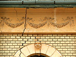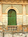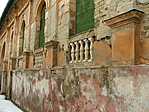 Az épület elhanyagoltnak és lakatlannak látszik.