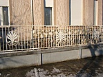 Néhol már kezd rozsdásodni ez a fehér, virágos vagy palmettás díszítésű kerítés.