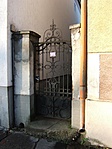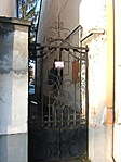 Viszonylag jó állapotú, kovácsoltvas, fekete kapu.
